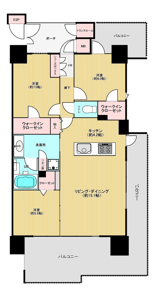LDK 19.3畳  洋室 7畳  洋室 6畳  洋室 5.5畳