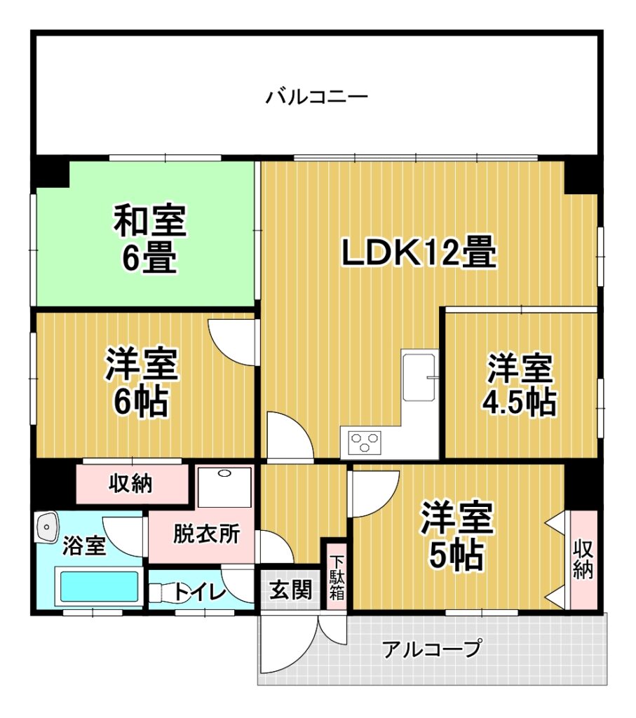 LDK 12畳  和室 6畳  洋室 6畳  洋室 5畳  洋室 4.5畳