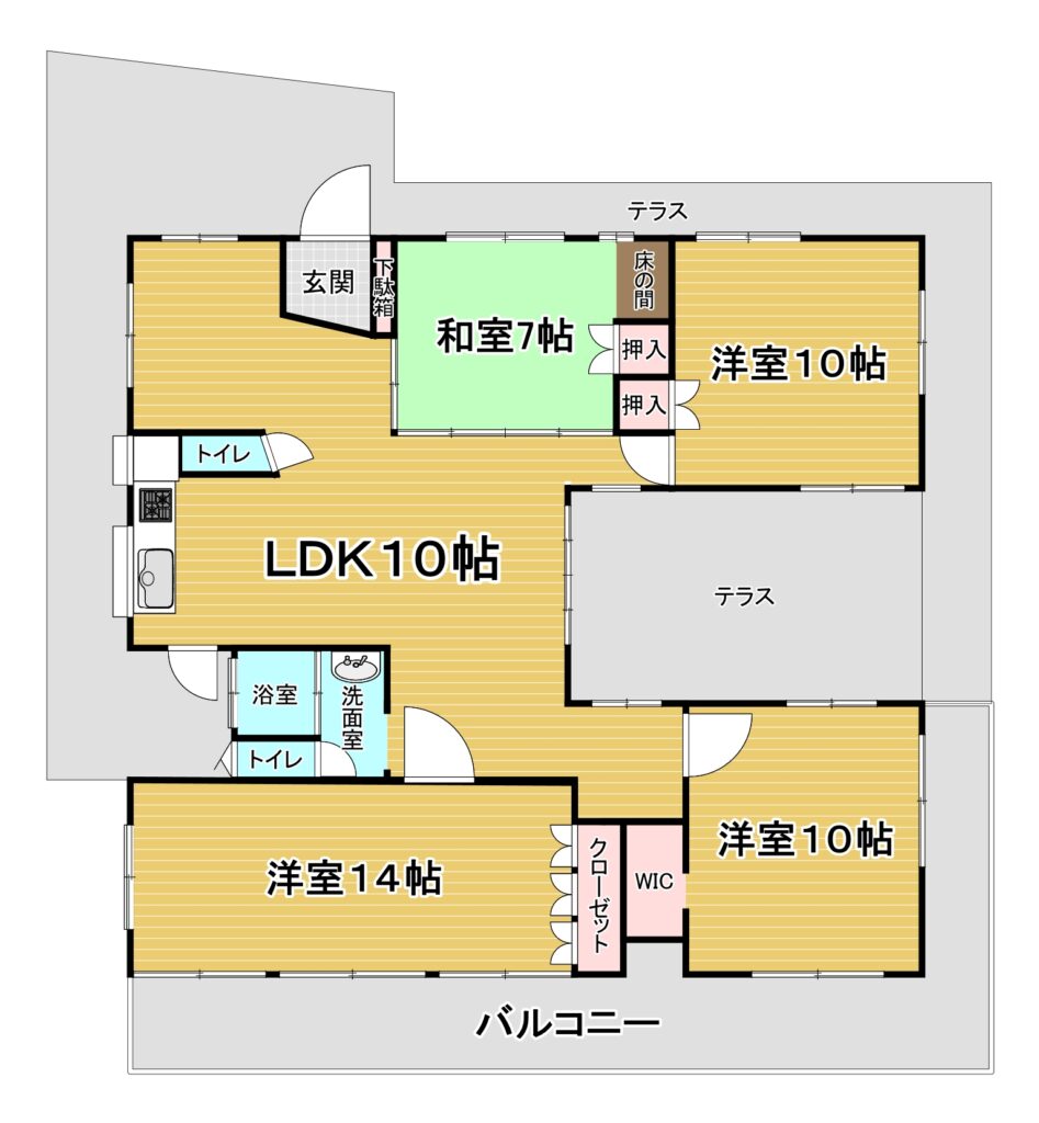 LDK 10畳  洋室 14畳  洋室 10畳  洋室 10畳  和室 7畳
